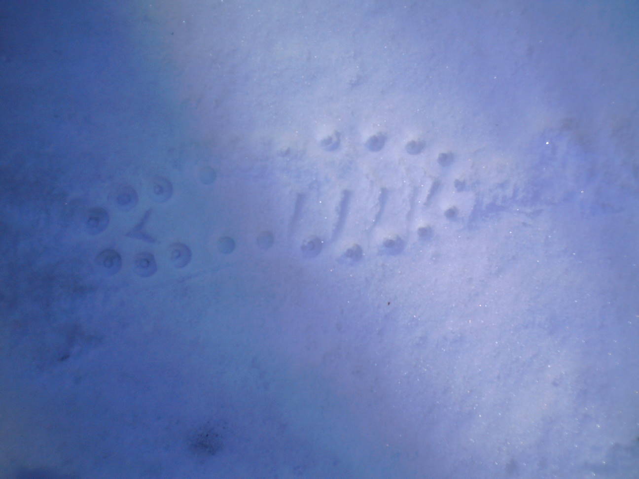 Today I took a walk down past Cedar Crest Camp and to the turn past the first narrow stretch about two and a half miles from my house. The temperature was around 25 degrees and a little breeze made it nippy at times. Saw my first opossum tracks of the year just in front of Mick's old place. Also saw a few fox tracks along the way, but otherwise not much to talk about in the way of animals. The road is fairly easy to travel with a four-wheel drive vehicle during the times it is below freezing. The base is from 0-3" thick and will soften when the temperature rise making travel a little more slippery. Best to stay in the absolute middle of the road if you attempt the unplowed roads.